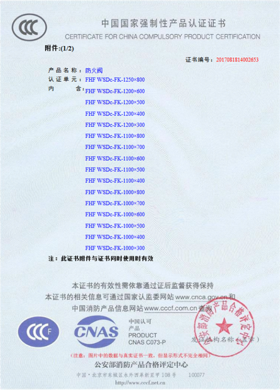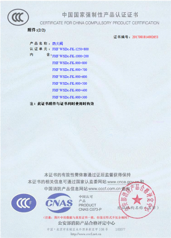 產(chǎn)品全通過國家消防檢測中心檢測,獲得CCC證書